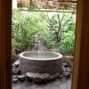 前回は岩風呂だったけど、今回は石桶風呂。内風呂は黒い石風呂です。