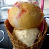 カップでいいよね~と言ってたのに、戻ってきたオットの手には追加料金のワッフルコーン。